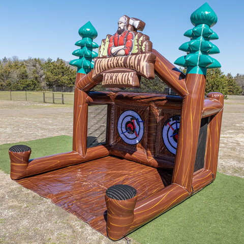 Step into the forest and into the spotlight with the Lumberjack Legends Axe Throwing Game, an inflatable crowd pleaser designed to fuel fierce, family-friendly competition. With two entirely separate throwing lanes, this game is perfect for head-to-head battles at school events, festivals, and corporate team-building days. It's safe, soft, and wildly entertaining for ages five and up.